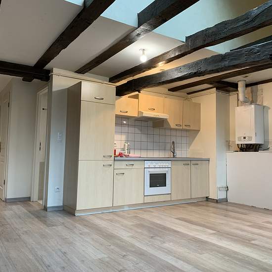 8 PLACE CHANOINCE KIRCH (entrée 2 rue des Chalands) / QUARTIER WELFERDING : F3 EN DUPLEX AU 2ème ETAGE COMPRENANT CUISINE EQUIPEE OUVERTE SUR SEJOUR, 1 CHAMBRE, SALLE DE BAINS, WC ; AU 2ème ETAGE SOUS COMBLES : 1 CHAMBRE. LOYER MENSUEL 530 EUR + PROV./CHARGES 70 EUR (eau froide, EDF communs, entretien chaudière, taxe OM)