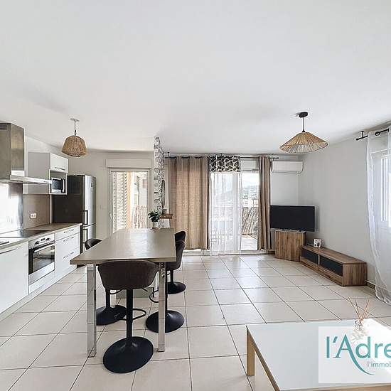 L'Agence L'Adresse ACI Ajaccio vous propose à la location un appartement de type T3 de 68 m² situé dans une résidence récente "Les Terrasses du Parc" idéalement situé à proximité immédiate des grandes surfaces, des écoles et de l'aéroport. Lumineux et bien agencé il se compose d'un séjour spacieux, d'une cuisine aménagée entièrement équipée, d'un WC indépendant ainsi que de deux chambres confortables et d'une salle de bain. Une provision pour l'eau chaude sanitaire et le chauffage est comprise dans les charges locatives. Prestations : - Clim...