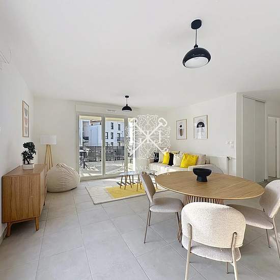 T3 NEUF MEUBLÉ - 74140 - SCIEZ RÉSIDENCE RIVE SUD - SCIEZ SUR LÉMAN - Avenue des Charmes, 74140 SCIEZ Merci de contacter l’agence au pour prévoir une visite. Venez découvrir au sein d'une copropriété sécurisée, ce logement T3 de 67,36 m2 avec ascenseur. Le bien se compose d'une entrée avec placard s'ouvrant sur un vaste séjour de 28,51m2, une cuisine ouverte meublée et équipée, ainsi qu'une terrasse de 16,05m2. Du coté nuit, vous trouverez deux chambres une de 11,75 m2 et une de 13,11m2 ainsi qu'une salle de bain. Une place de stationnement ...
