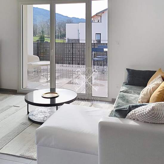T3 NEUF MEUBLÉ - 74140 - SCIEZ RÉSIDENCE RIVE SUD - SCIEZ SUR LÉMAN - Avenue des Charmes, 74140 SCIEZ Venez découvrir au sein d'une copropriété sécurisée, ce logement T3 de 67,28 m2 avec ascenseur. Le bien se compose d'une entrée avec placard s'ouvrant sur un vaste séjour de 28,00m2, une cuisine ouverte meublée et équipée, ainsi qu'une terrasse de 16,05m2. Du coté nuit, vous trouverez deux chambres une de 13,11 m2 et une de 11,75 m2 ainsi qu'une salle de bain. Une place de stationnement ainsi qu'une cave vient également compléter ce logement...
