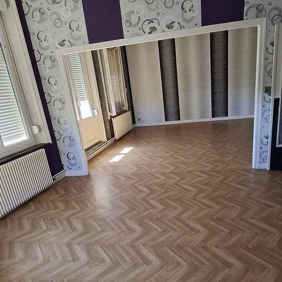 Appartement de 100m², au 2e étage avec balcon, grandes hauteurs sous plafond. 2 chambres, salle de bain avec baignoire, wc séparé grande pièce de vie, débarras. 595€ + 30€ de provisions sur charges