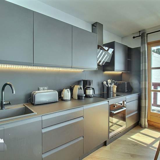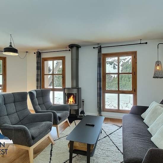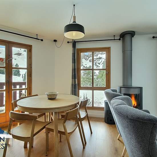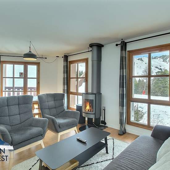 A propos de ce bien Cet appartement 2 chambres Duplex, avec poêle à bois, est situé au 5ème étage de la Résidence et peut accueillir jusqu'à 06 personnes. La décoration, à la fois cosy et contemporaine, met en valeur des finitions soignées et des matériaux de qualité, pour une atmosphère chaleureuse et élégante. D'une superficie de 53m2, l'appartement se compose : Niveau principal - D'une cuisine entièrement équipée ouverte sur un séjour lumineux avec vue sur les pistes de ski ; - D'une terrasse exposition Sud avec une vue panoramique sur l...