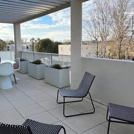 Location saisonnière : Venez séjourner dans ce charmant T3 situé à Sérignan en résidence sécurisée avec ascenseur et parking privé. Idéal pour 4 personnes, le bien est composé comme suit: un séjour/cuisine entièrement équipée, 2 chambres avec lits doubles (un 160 et un 180), une salle d'eau, un WC séparé et une belle terrasse de 24m² avec plancha électrique. Le ménage et le linge de maison sont inclus (possibilité de louer les kits de serviettes à l'agence). Le logement dispose du wifi et les animaux sont acceptés. Equipements: - clim - four...