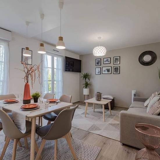Situé dans un quartier prisé de Serris, rue de Scandinaves, cet appartement de standing offre un cadre de vie exceptionnel. Avec ses 3 pièces, ce logement est entièrement meublé avec goût et équipé pour un confort optimal. Caractéristiques : Surface : 63m2 Disposition : séjour lumineux, cuisine ouverte équipée, deux chambres avec rangements, salle de bain moderne Équipements : électroménager complet, mobilier de qualité, connexion internet incluse Proximité : commerces, transports en commun, écoles, parcs et centres commerciaux Avantages : Q...