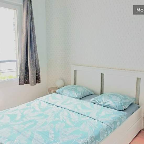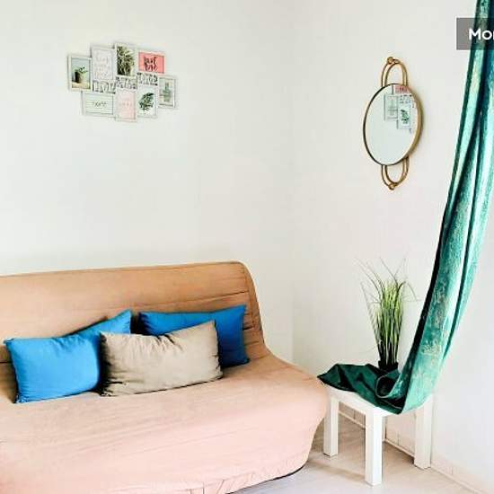 Beautiful new residence, large 3-room flat, over 70 m2, on the first floor with lift, 2 minutes' walk from metro line 12, Front Populaire station. The flat is bright, light and quiet, opening onto a garden with a large balcony/terrace. The flat has a large 30 m2 living room with sitting area, 2 comfortable convertible sofas in the living room and armchairs. Wi-Fi TV (fibre), dining area.... The living room opens onto a large balcony terrace. A large fully equipped and fitted kitchen. All the electrical appliances are recent (fridge, ceramic ...