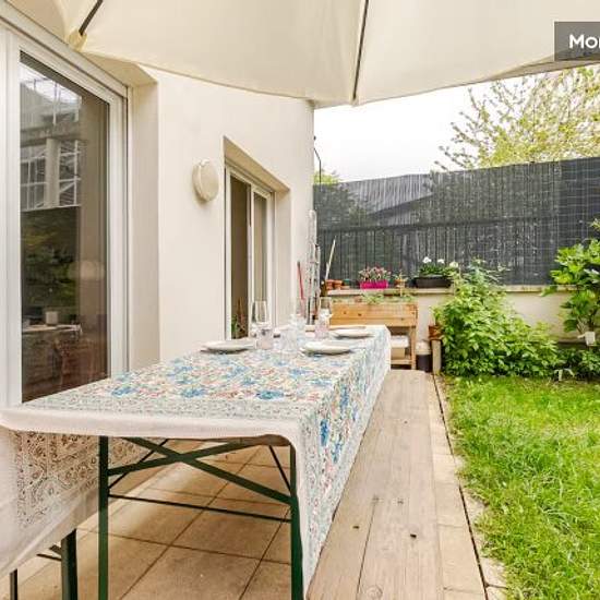 Ground floor with high ceilings (3.35 m) and 90 m2 garden - bright and well laid-out. At the foot of Metro Front Populaire line 12, 15 minutes (by metro) from Montmartre and 15 minutes (by bus) from the Stade de France. Quiet neighbourhood and easy access to Paris. Parking space available, secure car park. The flat: - East facing - Sun in the garden all morning until mid-afternoon. - Private garden of 90m2 - 1 bedroom - Bright living room with sofa bed (extra night - 2 people) - Smart TV with Netflix - Fully equipped kitchen (fridge, freezer...