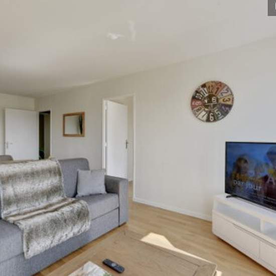 Appartement lumineux et coloré pour 6 personnes. Vous vous rendez à Paris pour un séjour en famille ou un voyage d'affaires ? Découvrez ce bel appartement de 66 m², dans une résidence calme et sécurisée, avec parking privé souterrain ; Tout ceci, pour profiter amplement de votre séjour. Le linge de maison est fourni (draps, serviettes, torchons de cuisine, etc.), et est de qualité supérieure. Pour le couchage, vous disposez d'un lit double dans l'une des chambres et d'un large lit dans la seconde ; De plus le salon abrite un Canapé-lit doubl...