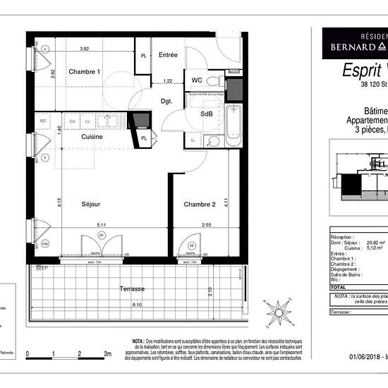 T3 de 63.33m² en rez-de-chaussée haut dans une résidence récente et sécurisée situé au centre-ville de St-Egrève (avenue Général de Gaulle), à proximité immédiate d’un arrêt de tram (Pont de Vence), proches de toutes commodités (écoles, commerces). Appartement composé d’une entrée avec placard. D’un séjour / cuisine équipée de 25.94m² (meubles haut et bas, four, plaque de cuisson, hotte, emplacement lave-vaisselle) ouvrant sur la terrasse de 16m². Chambre 1 de 11.62m² avec parquet, chambre 2 de 10.05 m² avec parquet ouvrant sur la terrasse. ...