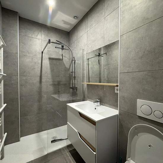Saint-etienne, secteur janon / terrenoire, au rez-de-chaussée, appartement t3 de 56,89 m² refait à neuf. Salon / séjour (18,84 m²), cuisine semi-équipée séparée (7,88 m²), deux chambres (9,94 m² et 9,73 m²), une salle d'eau avec wc (3,51 m²). Menuiseries pvc double vitrage; chauffage individuel au gaz diffusion par radiateurs. Loyer de 550,00 eur / mois. Les honoraires charge locataire sont de 625,79 eur (soit 11,00 eur / m²) dont 170,67 eur pour état des lieux (soit 3,00 eur / m²). Dépôt de garantie : 550.00 euros. Classe energie : d. Conta...