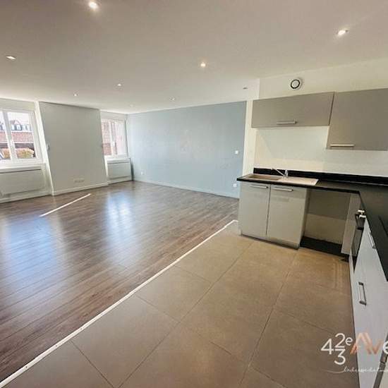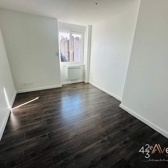 Hyper Centre/Quartier piéton, au 5 Rue Alsace Lorraine à St Etienne, T3 d'environ 75.89m2 situé au 5ème étage avec ascenseur, sur cour au calme exposé à l'est. Hall d'entrée, cuisine équipée ouverte sur pièce à vivre, deux chambres avec placard, une salle d'eau et un wc, chauffage individuel électrique et production d'eau chaude par cumulus. Loyer 665€/mois Provision sur charges 30€/mois Dépôt de garantie 665€ Frais d'Agence : Visite, Dossier et Bail 200€ TTC et Frais d'état des lieux 180€ TTC. AGENCE 42ème AVENUE 1 Cours Victor Hugo 42000 S...