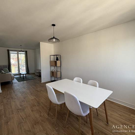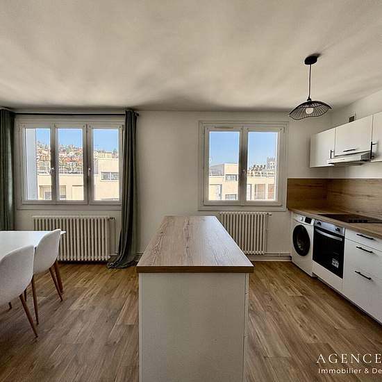 Appartement de 67 m2 proche du cours Fauriel. Il est situé au dernier étage d'un immeuble bien entretenu. Vous trouverez un grand espace cuisine, qui est aménagé et équipé ouvert sur une salle à manger et un séjour. Ce dernier donne accès à une loggia. L'appartement se compose également de deux chambres, d'une salle d'eau et d'un WC séparé. L'appartement est traversant et très lumineux. L'immeuble est équipé d'un ascenseur sur demi palier. L'appartement à été totalement rénové et meublé avec gout. Possibilité de collocation Loyer euros mensu...