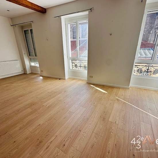 Quartier des Halles/Hyper Centre, au 3 rue Léon Nautin à St Etienne. T4 situé au 2ème étage avec ascenseur, d'environ 105.64m2, composé d'un hall d'entrée/dégagement, une cuisine ouverte sur séjour/salon, 3 chambres, une salle de bains et une salle d'eau, un wc, chauffage individuelle gaz. Loyer 750€/mois Provision sur charges 50€/mois Dépôt de garantie 750€ Frais d'Agence : Visite, Dossier, Bail 620€ TTC Frais d'Etat des lieux 180€ TTC. Agence 42ème Avenue 1 Cours Victor Hugo 42000 SAINT ETIENNE - . 'Les informations sur les risques auxquel...
