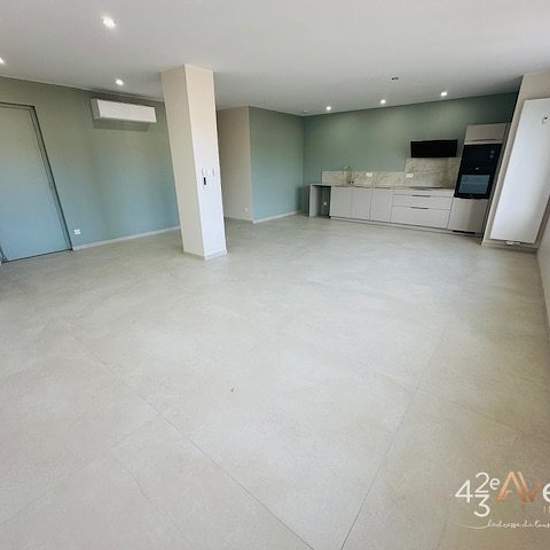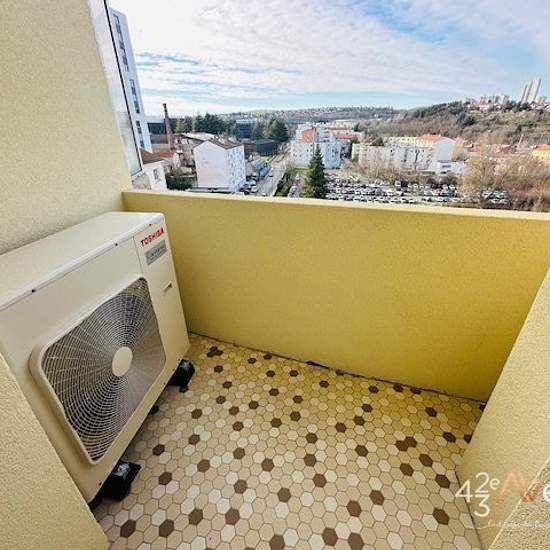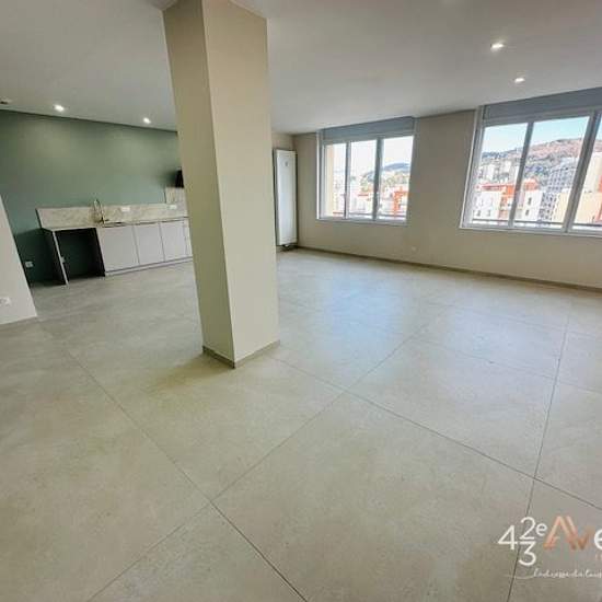 Quartier Bellevue/Au 12 Place Bellevue à St Etienne, Très beau T3 neuf d'environ 91.62m2 situé au 7ème étage avec ascenseur, composé d'une belle pièce à vivre de 48.92m2 avec cuisine équipée, 2 chambres dont une avec balcon, une salle d'eau, un wc avec lave-mains, une buanderie. Chauffage collectif et Clim. Double vitrage et volet électrique. Loyer 905€/mois Provision sur charges 95€/mois Dépôt de garantie 905€ Frais d'agence : Visite, Dossier et Bail 705€ TTC et Frais d'état des lieux 200€ TTC. Possible location de Garage double 120€/mois C...