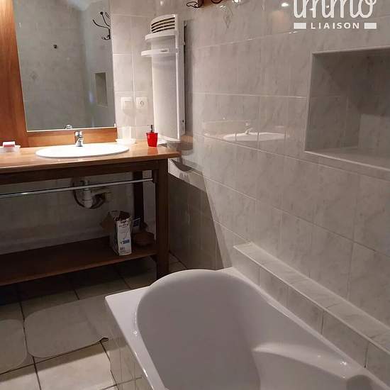 Appartement 3 pièces appartement f3 de 77.01 m² avec jardin (environ 338 m²) et terrasse il comprend une entrée, une pièce de vie avec espace cuisine, deux chambres avec penderie, une salle de bains, un wc avec lave-mains. Une cave et deux places de stationnement. Murs en pierres et menuiseries bois en double vitrage chauffage pac et chauffe-eau thermodynamique récents assainissement relié au tout à l’égout fibre installée provision sur charges récupérables 13 euros / mois - honoraires d'agence non inclus - état des lieux d’entrée 231,03 eur...