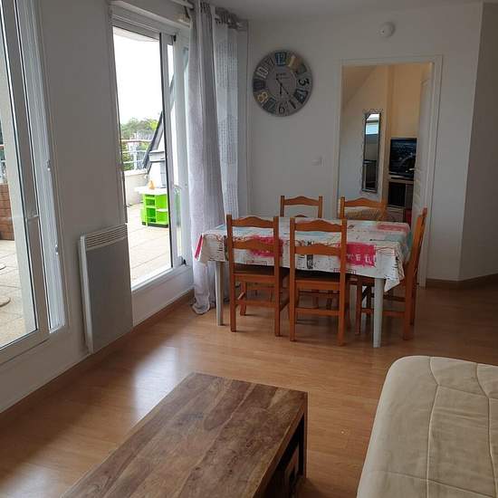 Au sein d'une résidence, charmant appartement de 2008 T3 de 63 m² DISPONIBLE AU 8 Décembre 2025 Entrée avec placard, séjour avec coin cuisine aménagée et équipée donnant sur terrasse de 21m², 2 chambres, salle de bains, dressing, wc. Garage fermé et place de stationnement. Adresser un mail afin de retirer un dossier de candidature à : EMAIL Loyer de base 740 €/mois. Provision sur charges 40 €/mois, régularisation annuelle. Dépôt de garantie 740 €. Classe énergie C, Classe climat A Montant estimé des dépenses annuelles d'énergie pour un usage...