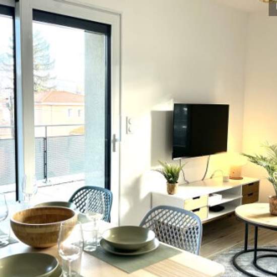 Magnifique appartement T3 lumineux en étage, au sein d'une résidence de standing entièrement réhabilitée en 2023. Ce logement neuf bénéficie d'équipements modernes et de grandes ouvertures donnant accès à une immense terrasse ensoleillée. Stationnement sécurisé à l'intérieur de la copropriété dont l'accès se fait par badge. Résidence calme au sein d'un grand jardin aux arbres centenaires, située à 10min à pied du métro B (station hôpitaux Lyon Sud) et du centre-ville de Saint-Genis-Laval. Appartement d'environ 60m2 avec deux chambres, une gr...