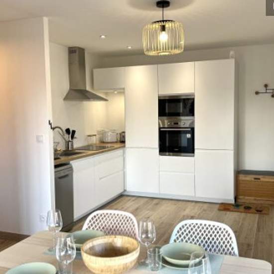 Magnifique appartement T3 lumineux en étage, au sein d'une résidence de standing entièrement réhabilitée en 2023. Ce logement neuf bénéficie d'équipements modernes et de grandes ouvertures donnant accès à une immense terrasse ensoleillée. Stationnement sécurisé à l'intérieur de la copropriété dont l'accès se fait par badge. Résidence calme au sein d'un grand jardin aux arbres centenaires, située à 10min à pied du métro B (station hôpitaux Lyon Sud) et du centre-ville de Saint-Genis-Laval. Appartement d'environ 60m2 avec deux chambres, une gr...