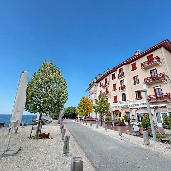 En front de lac et au calme, bel appartement traversant de type 2 pièces offrant un spacieux séjour lumineux avec cuisine équipée ouvrant sur balcon, une chambre avec rangements, un bureau bénéficiant également d'un balcon, une salle de bains, chauffage et une production d'eau chaude individuels électriques. Agence BOCHATON IMMOBILIER 6 bis, avenue Jean Léger à EVIAN LES BAINS Tél: - EMAIL