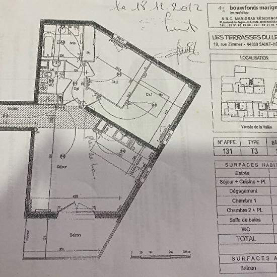 SAINT HERBLAIN T3 66 m2. EXLUSIVITE ST HERBLAIN BOURG - Grand appartement type 3 situé au 3ème étage avec ascenseur, à proximité des commerces, transports et écoles (13 rue du Général Zimmer 44800) Il se compose d'une entrée avec placard, d'une pièce de vie avec cuisine ouverte semi aménagée (meubles hauts et bas, plaque induction, hotte, four), d'un balcon exposé EST, d'un dégagement desservant la salle de bains (avec arrivées d'eau), le WC indépendant et les deux chambres dont une avec placard. Vous profiterez d'un garage au sous-sol. Di...