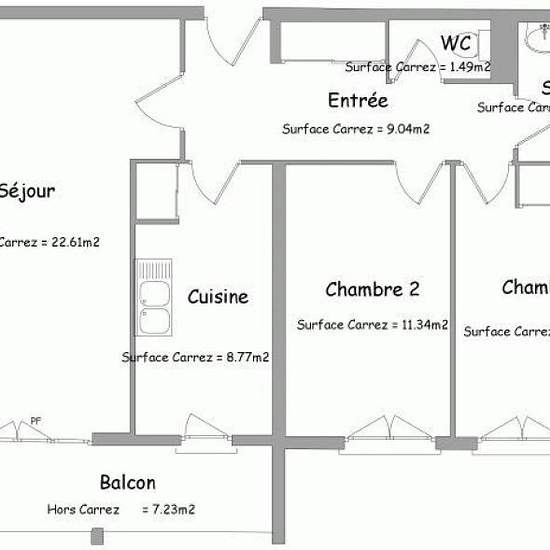 Saint Jean de la Ruelle Appartement de 3 pièces dans résidence sécurisée comprenant un séjour avec balcon, une cuisine séparée aménagée, 2 chambres, une salle de bains. Une place de paking.