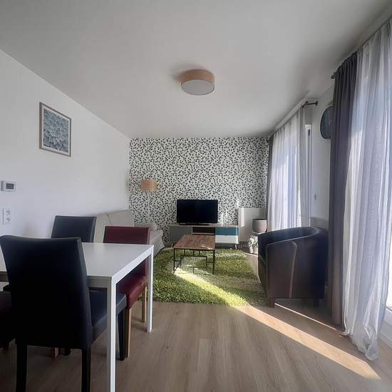 Situé au 4ème étage d'une résidence de haut standing construite en 2019, cet appartement entièrement équipé et meublé, d'une superficie d'environ 58 m2 offre un cadre de vie à la fois confortable et paisible, à deux pas de Bâle, au coeur de Saint-Louis. Pour toute demande de visite, nous vous invitons à nous contacter par téléphone au L'appartement se compose d'une entrée, d'un séjour lumineux ouvrant sur une spacieuse terrasse, d'une cuisine ouverte entièrement équipée (réfrigérateur, congélateur, lave-vaisselle et machine à laver), de deu...