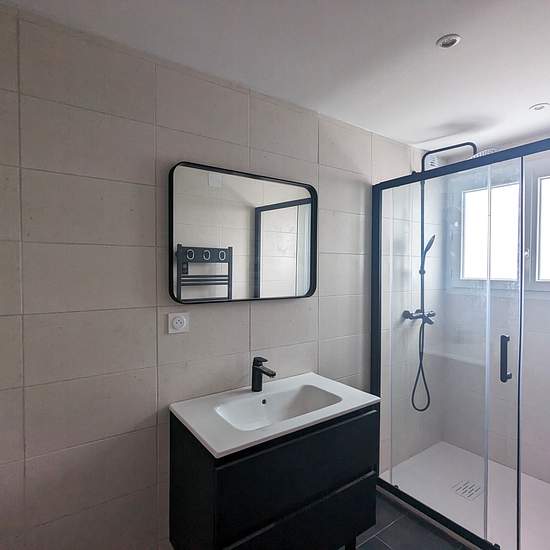 Découvrez le cadre de vie idéal dans ce ravissant appartement T3, situé au rez-de-chaussée d'une maison soigneusement rénovée, à seulement 5 minutes à pied du vibrant centre-ville de Saint-Palais. L'appartement entièrement rénové comprend une pièce de vie avec cuisine ouverte et équipée (plaque, hotte, four, frigo) un cellier et un dégagement dessert 2 chambres, un wc séparé et une salle d'eau avec douche à l'italienne. Toutes les menuiseries sont en double vitrage et le tout est chauffé au moyen de clim réversible. Le bien détient en plus u...