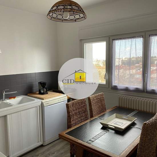 Coquet appartement F3 meublé de 64.70 m2, résidence Les Garennes (proximité Gare), au 6e étage, comprenant : Hall d'entrée, séjour ouvrant sur un balcon, cuisine avec un cellier, 2 chambres, 1 dressing, SDB, WC. Cave. Place privative de parking. Chauffage et eau compris dans les charges. Libre mi décembre.