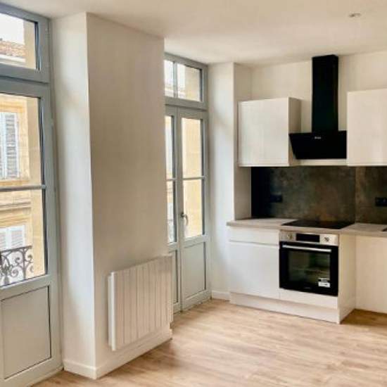 SAINTE-FOY-LA-GRANDE, 650 Euro + charges 30 Euro Appartement T3 Refait a neuf de 74 m2. Comprenant entree, sejour, cuisine Americaine equipee, deux chambres, salle d'eau, WC. Proche commodites. Caution : 1 mois HC. Nous contacter LADP fd 210 Euro - mis a jour le 10/12/25 - loyer hors charges