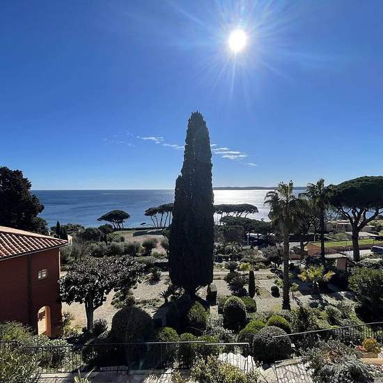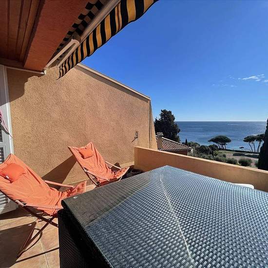 Superbe appartement terrasse avec vue mer, idéal pour vos vacances à Sainte Maxime. Appartement de 43 m2 avec parking dans la résidence Piscine commune 1 séjour ( canapé convertible, TV grand écran) avec cuisine ouverte équipée ( réfrigérateur, congélateur, lave-vaisselle, four..) Terrasse avec table et 4 chaises + 2 fauteuils relax en rez de chaussée 1 chambre avec salle de douche En mezzanine, 1 bureau + coin détente avec futon 1er étage, 1 chambre parentale avec salle de bain L'accès à l'appartement peut se faire par un funiculaire Les fr...
