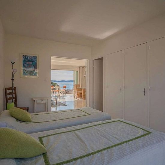 Dans une belle résidence fermée et sécurisée du Centre-Ville de renom, très Bel appartement de 3 Pièces (83m²) avec une Vue mer panoramique sur le Golfe de Saint-Tropez. Il se compose dun vaste séjour ouvert sur une terrasse. Une cuisine fermée et équipée (réfrigérateur, Four, four micro-ondes, machine à café classique et à expresso) une chambre double avec vue mer (160x190cm) et une salle de douche attenante, une chambre double (deux lits simples 90x90cm) ; une salle d'eau (1 wc et un lave-linge) un wc invité. Climatisation. Un garage fermé...