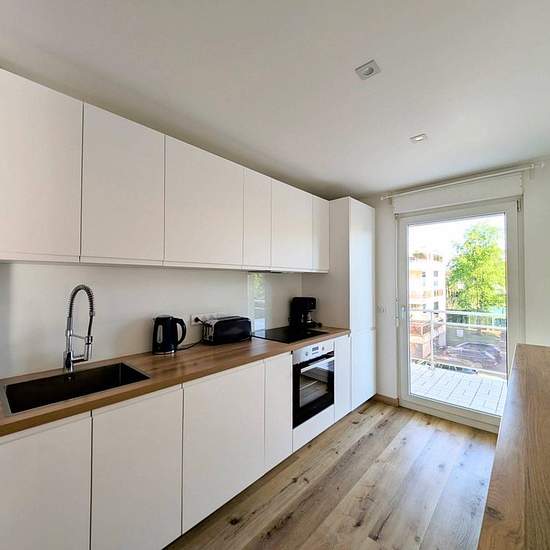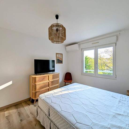 Au coeur du quartier de la Robertsau, à proximité du château de Pourtalès, appartement climatisé refait à neuf de 3 pièces 88 m² entièrement meublé Il vous séduira par sa luminosité, ses espaces et ses prestations de qualité. Entrée avec rangements, pièce de vie donnant sur un balcon, une cuisine fermée aménagée et équipée donnant sur un autre balcon. Dans l'espace nuit, vous trouverez 2 chambres parquetées avec rangements, une salle d'eau, une salle de bains et un wc séparé. Un box et une cave sont inclus. Honoraires de 1 144 € TTC à la cha...
