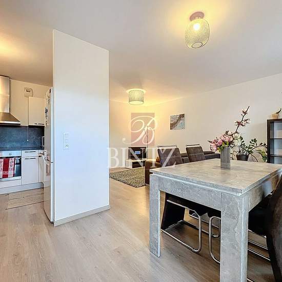 NEUDORF - 3 pièces Meublé avec deux balcons Découvrez cet appartement T3 entièrement meublé, situé rue Alice Bommer à Strasbourg. Construit en 2017, il est en bon état et bénéficie d'un accès par ascenseur. Avec une surface habitable de 65.36 m², il se compose de 3 pièces, dont 2 chambres spacieuses, une salle de bains et un WC indépendant. Profitez également d'une cuisine américaine aménagée et équipée. Disposant de deux balcons, vous pourrez admirer la vue sur la cathédrale de Strasbourg. Cet appartement est équipé d'un chauffage collectif...