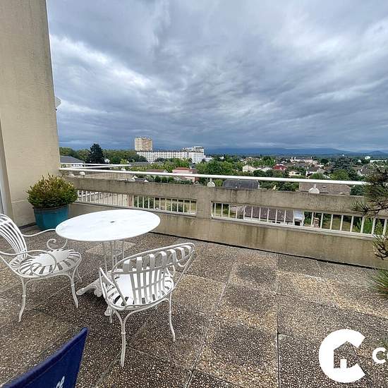 RARE sur le marché – T3 dernier étage avec vue panoramique + terrasses à Tarbes situé à Tarbes rue Aristide Bergès dans une Résidence de standing avec ascenseur Laissez-vous charmer par ce magnifique appartement T3 meublé de 80 m², situé au 5e et dernier étage d’une résidence entretenue, offrant deux superbes terrasses exposées plein SUD avec une vue exceptionnelle sur Tarbes et les Pyrénées. Appartement meublé – prêt à vivre ! En détail : Salon spacieux et lumineux avec accès terrasse Grande chambre avec rangements Cuisine séparée, entièrem...