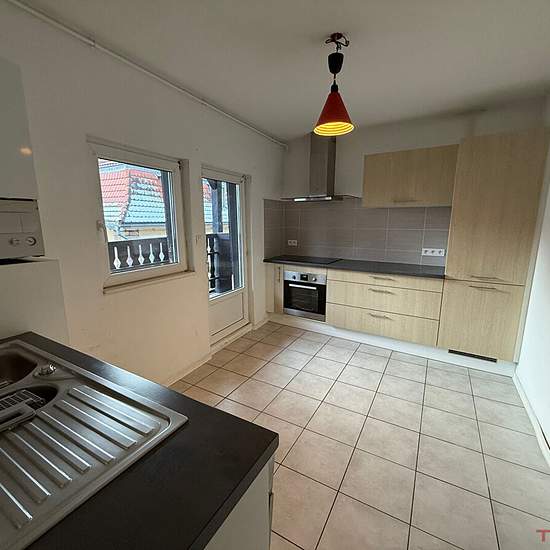 THANN - Centre Ville Rue Gerthoffer Lumineux 3 pièces 71 m² au 3ème étage sans ascenseur. Grande entrée, cuisine indépendante équipée avec grand balcon lumineux, 2 chambres dont une très spacieuse, séjour, salle de bains avec baignoire et wc séparés. Chauffage individuel au gaz. Pas de cave et pas de parking. Loyer 550 euros + 30 euros de charges (communs + eau froide) Dépôt de garantie : 550 euros Honoraires à la charge du locataire : 450 euros (dont 214 euros pour l'état des lieux d'entrée) Disponible immédiatement.