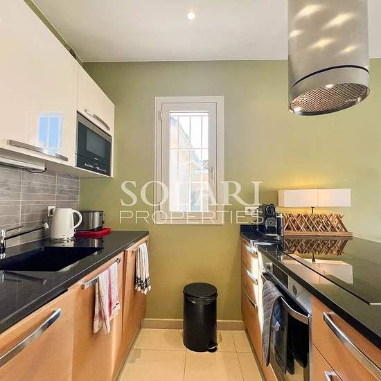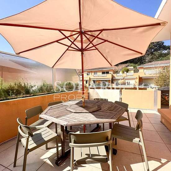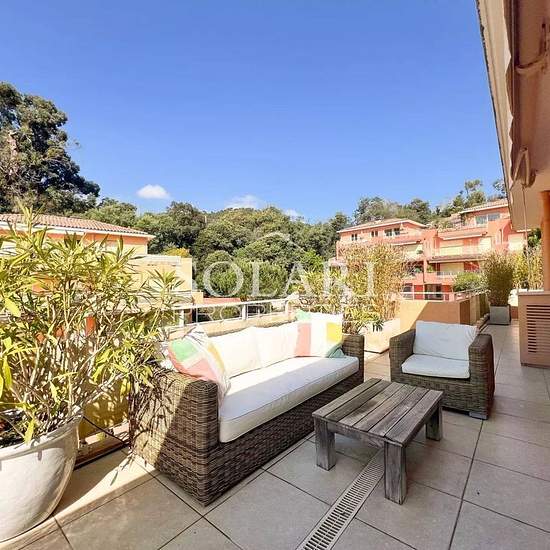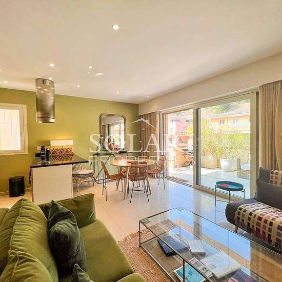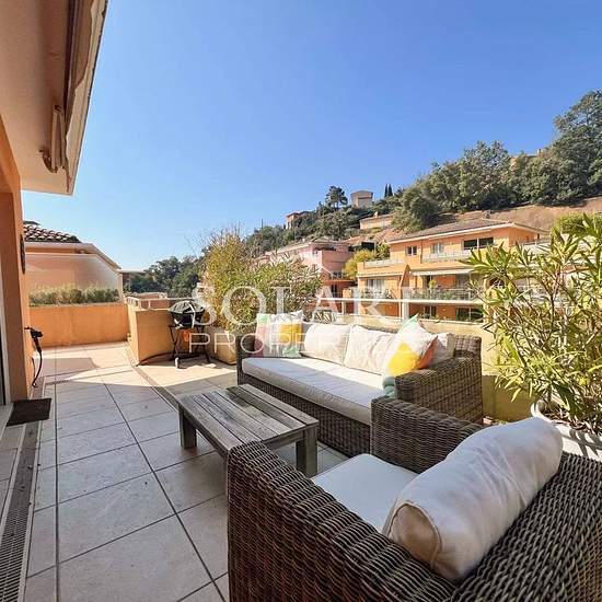 Location Saisonnière : Dans une résidence fermée, face aux plages de la Figueirette, superbe appartement 3 pièces situé en dernier étage. L'appartement a été entièrement rénové avec goût, il offre de belles prestations, et une terrasse spacieuse. L'appartement se compose d'une belle pièce à vivre comprenant une cuisine ouverte avec un îlot central, un espace salle à manger et un coin salon, le tout ouvrant sur une belle et spacieuse terrasse avec tables et chaises. Le coin nuit comporte une chambre double avec sa salle de douche en-suite et ...