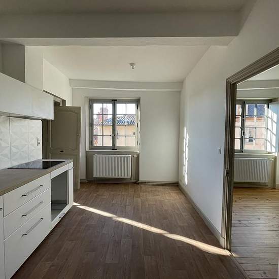 Fiche id-sit22969g : a louer en centre-ville de thiers, bel appartement entièrement rénové de type 3 de 83,25 m². Il se compose d'un séjour desservant la cuisine semi-équipée (éléments, hotte, plaque induction) et la 1ère chambre. Depuis la cuisine, on accède à un petit dégagement (chaufferie) menant au wc et à la salle de bains, ainsi qu'à la 2ème chambre (avec placard mural). Ce logement avec beaucoup de cachet se situe au 3ème étage d'un immeuble sécurisé par interphone. Loyer hc : 520€ + provision pour charges (eau teom, entretien annuel...