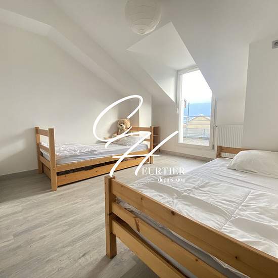 TULLINS - 11 Bis Avenue de la gare - Proche des écoles, collège, de la Gare SNCF et de tous les commerces de proximité (Intermarché, tabac, boulangerie. ) A louer COUP DE COEUR, magnifique T3 en duplex entièrement MEUBLE. Vous serez charmés dès votre arrivée par sa hauteur sous plafond et son agencement. Cet appartement de type 3 pièces + cuisine 70 m² environ est situé au 4ème et dernier étage d'une copropriété récente et de standing. Sécurisée, elle bénéficie d'un ascenseur et d'une place de parking privative pour faciliter votre stationne...