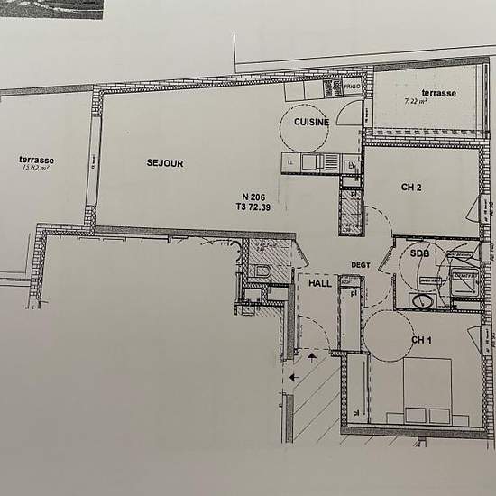 Logement traversant de type 3 meublé avenue des Baumes à Valence. Dans une copropriété de 2019. Appartement composé d'un hall, grand séjour et cuisine ouverte sur deux terrasses d'environ 23 m². Deux chambres, salle d'eau (douche) et wc séparé. Il est exposé EST / OUEST. Chauffage individuel gaz, eau individuel et électricité individuel. Grand garage en sous-sol. Disponible début décembre 2025