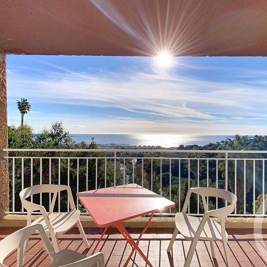 GOLFE JUAN VUE MER PANORAMIQUE Au calme absolu, dans une résidence située dans un quartier de standing, au cœur de la verdure des collines de Golfe Juan, appartement 3 pièces à louer meublé à l'année. Cet appartement traversant, situé au dernier étage et parfaitement agencé, se compose d'un hall d'entrée, d'un grand séjour ouvrant sur une belle terrasse exposée plein sud offrant une magnifique vue mer panoramique sans aucun vis-à-vis, d'une cuisine américaine aménagée et équipée donnant sur un balcon, d'une salle d'eau, ainsi que d'un coin n...