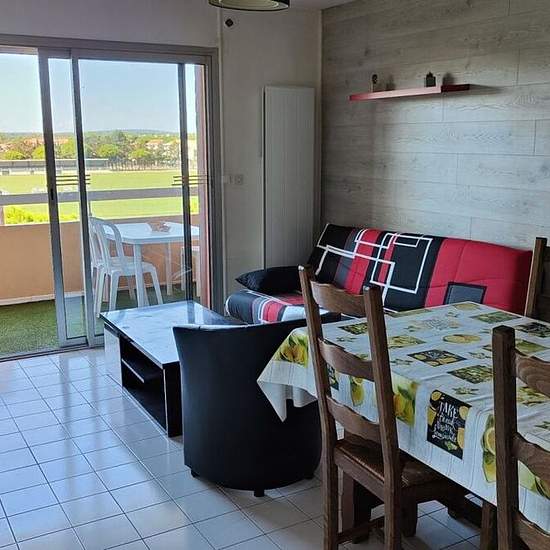 LOCATION A L'ANNÉE MEUBLÉE En résidence sécurisée, au 3ème et dernier étage, un bel appartement meublé, loué à l'année donnant sur une jolie terrasse composé d'un séjour spacieux avec cuisine équipée, deux chambres avec lits 140 et lits superposées un wc séparé, une salle de bains. Très bon état. Equipements : plaques electriques, micro-ondes, réfrigérateur / congélateur Libre 566euros + 30euros de charges (charges comprennent l'eau et la copropriété avec régularisation annuelle) résidence en face du stade, très bien située, vue dégagée. - h...