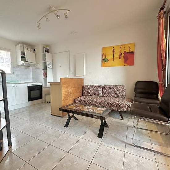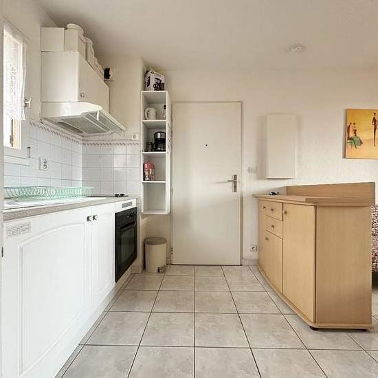 À LOUER A L'ANNEE MEUBLEE En résidence, un appartement au 1er étage composé d'un séjour avec coin cuisine équipée, une chambre avec lit 160 et placard, une chambre cabine avec 2 lits90 superposés, une salle d'eau avec douche et wc séparé, le tout donnant sur une loggia lumineuse. Au rez de chaussée de la résidence, un cellier privatif permettant de stocker vélo ou autres. Equipement : lave linge, frigo / congel, Tv, four mural, hotte plaque vitrocéramique (2 feux ), micro onde etc. Loyer : 500 euros Charges comprises (avance pour consommatio...