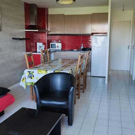 LOCATION A L'ANNÉE MEUBLÉE En résidence sécurisée , au 3ème et dernier étage, un bel appartement meublé, loué à l'année donnant sur une jolie terrasse composé d'un séjour spacieux avec cuisine équipée , deux chambres avec lits 140 et lits superposées un wc séparé , une salle de bains . Très bon état . Equipements :plaques electriques, micro-ondes, réfrigérateur/congélateur Libre 566euros + 30euros de charges ( charges comprennent l'eau et la copropriété avec régularisation annuelle) résidence en face du stade , très bien située , vue dégagée...