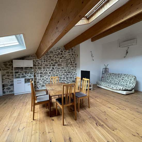 Vals les bains, appartement t3 meublé au troisième étage comprenant un séjour avec un coin cuisine, deux chambres, une salle d'eau avec wc. Charges comprises avec régularisation annuelle : entretien des communs / eau froide / entretien climatisation.
