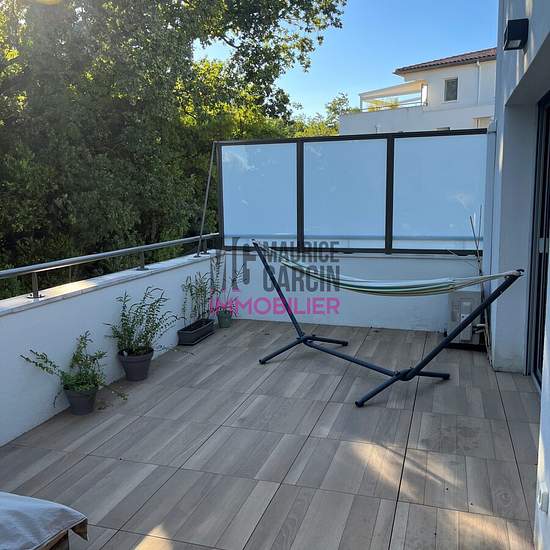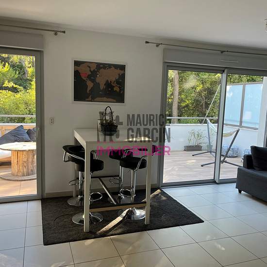 Les Jardins de Sainte Anne, résidence sécurisée avec ascenseur. Situé au 1er étage, T3 d'une superficie habitable de 67.10m² et comprenant : entrée avec placard, spacieux séjour climatisé et sa cuisine américaine aménagée, 2 chambres avec placard, salle d'eau et toilettes indépendant. Le tout avec une magnifique terrasse de plus de 20m² et sa vue dégagée et 2 places de parking dont 1 en sous sol. La taxe sur les ordures ménagères est incluse dans les charges. Classe énergie : A Loyer : 888€ CC/ mois dont 73€ de charges (provision donnant lie...