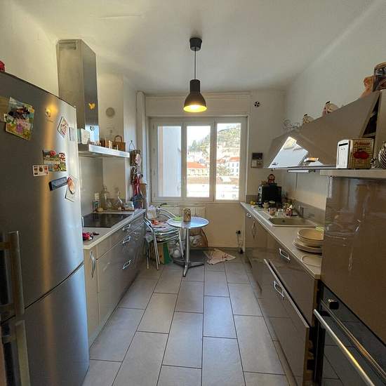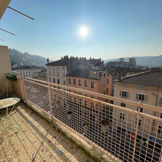 COEUR DE VIENNE Vue imprenable au 6ème étage avec ascenseur aux pieds des commerces - Venez découvrir ce très bel appartement entièrement meublé de type 3 de 76.96m2 environ et comprenant : Un hall d'entrée, une cuisine meublée et équipée ( hotte, plaque de cuisson, four, réfrigérateur / congélateur, micro-ondes, éléments de rangements hauts et bas), un salon / séjour très beau parquet avec accès balcon, une chambre avec lit double et grand dressing, une chambre avec possibilité 2 lits simples et rangements, une salle d'eau avec douche, meub...