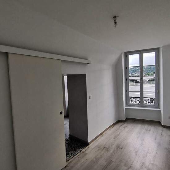 VIENNE - Proche des axes routiers, dans une petite copropriété, au 1er étage, un appartement de type 3 bis de 67,14 m² et comprenant : Hall d'entrée, cuisine indépendante aménagée, salon / séjour carrelé, 2 chambres en parquet, une pièce pouvant servir de bureau, salle de bains avec baignoire, meuble vasque, WC, sèche serviette. L'appartement a été entièrement repeint en blanc. Disponible le 24 février 2026. Chauffage individuel électrique .Loyer : 680.00 € + acompte charges (10.00 €)Honoraires agence : 738.00 € dont 201.00 € d'établissement...