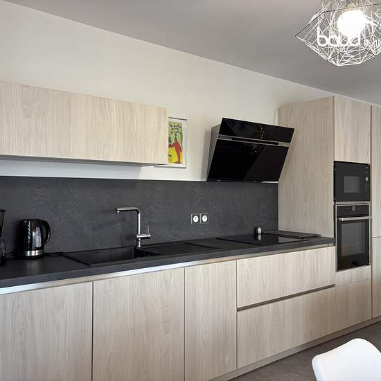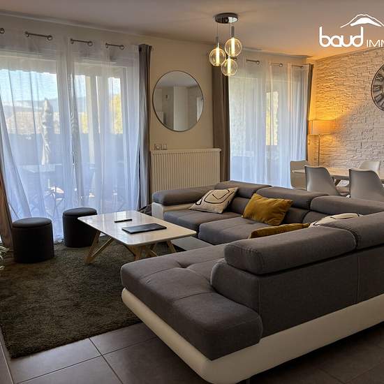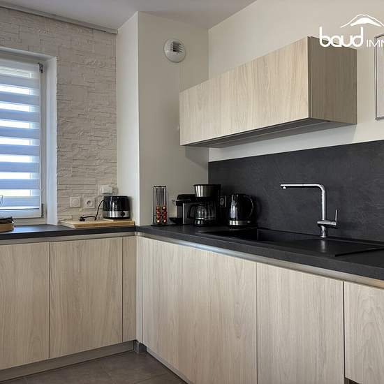 Dans un bâtiment construit en 2018, à deux pas du centre ce très bel appartement situé au rez-de-chaussée comprend une large entrée et un dégagement avec rangements intégrés desservant le salon l'espace cuisine moderne entièrement équipée et enfin deux chambres, la salle d'eau et le wc séparés. La terrasse parfaitement aménagée (plancher bois) donne à l'Ouest. Ce bien est proposé avec une place de parking privative et un casier à skis. La copropriété récente est très bien entretenue et jouit d'un chauffage collectif au bois. En face de l'app...