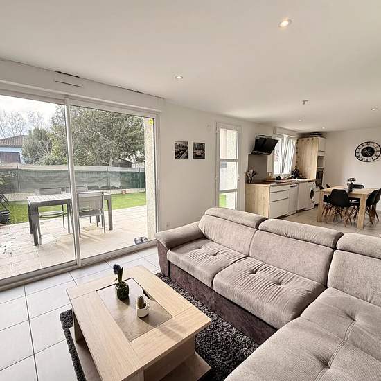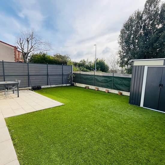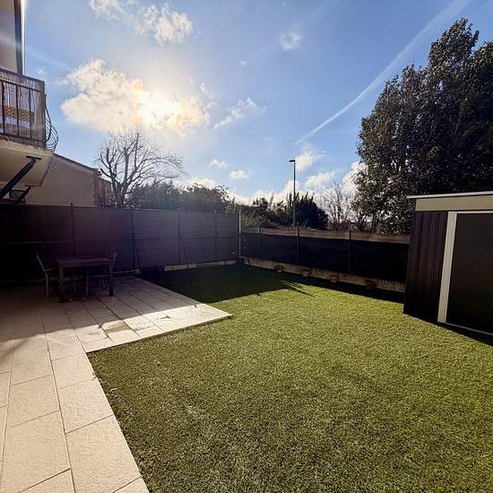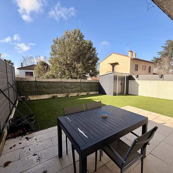 RARE SUR LE SECTEUR Magnifique appartement T3 de 63 m2, entièrement rénové, situé en rez de chaussée. Il se compose d'une vaste et lumineuse pièce de vie avec cuisine équipée (éléments meublants, plaque de cuisson, hotte aspirante, four), de deux chambres avec placards équipés, d'une salle d'eau-wc. Il dispose d'un beau jardinet privatif clos de 65 m2, dont une terrasse carrelée, ainsi que d'un abris de jardin. Place de stationnement privative.Climatisation. Loyer: 750 € HC/mois.