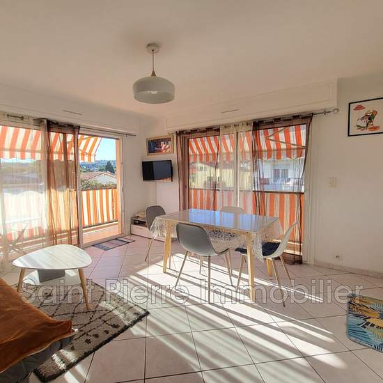 Villeneuve-Loubet plage, quartier résidentiel proche de la mer et des commerces. Superbe appartement 3 pièces meublé très bien agencé, situé en étage élevé et baigné de lumière. Il se compose d'un séjour lumineux d'angle en exposition principale Ouest avec sa cuisine équipée ouverte, l'ensemble donnant sur une terrasse d'angle avec vue dégagée sur ce secteur résidentiel. 2 chambres dont une avec placard, salle de douche et toilettes indépendants. Un grand parking extérieur privé dans la résidence permettant de stationner jusqu'à 2 petits véh...