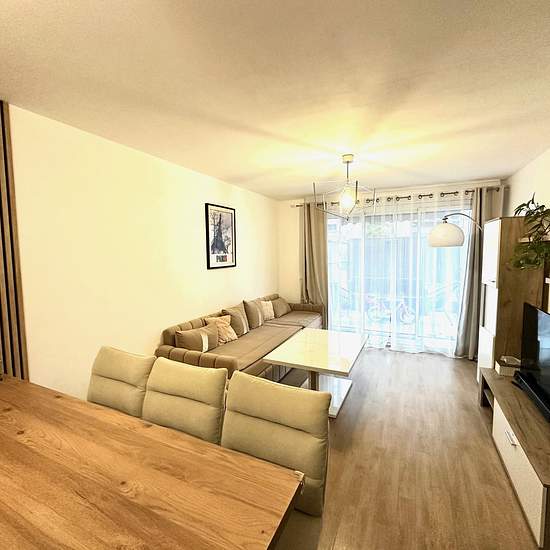5 AVENUE PAUL VERLAINE, dans une résidence récente, bel appartement 3 pièces de 56m2 avec jardin. Il est situé au rez de chaussée et est composé d'une entrée, un beau séjour / cuisine équipée de 23.9m2, 2 chambres dont une avec un dressing (9.34m2 et 12.4m2), salle de bain et wc séparé. Le salon donne sur une terrasse amménagée de 14.9m2 et un jardin de 57m2. L'appartement est en très en bon état. Loyer: 1 350EUR + 126EUR de charges = 1 476EUR/mois charges comprises. Chauffage, eau froide et eau chaude compris dans les charges. Parking en so...